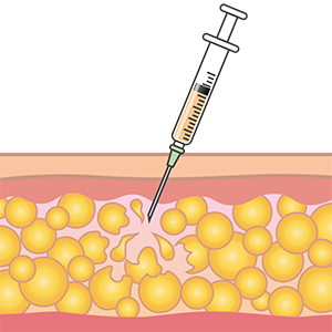気になる部位に薬剤を注入するだけで、脂肪を溶かして皮膚を引き締めます。溶解された脂肪細胞は自然に体外へと排出されます。