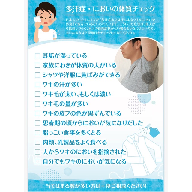 当院では多汗症治療も行っておりますので、お気軽にお問い合わせください