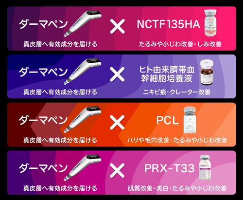 現在は上記4種類の製剤から、お肌の悩みに合わせて選んでいきます![]()