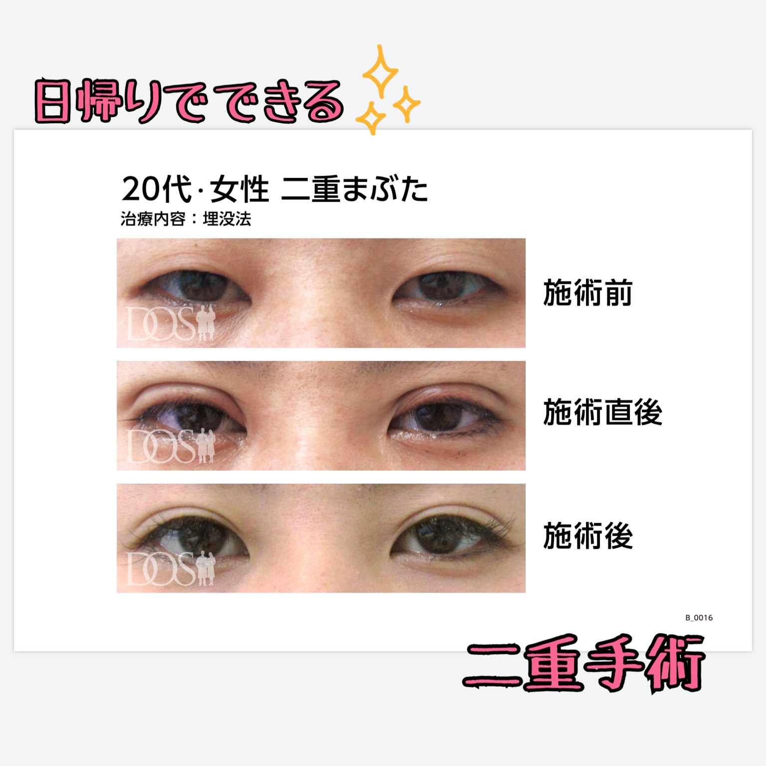 日帰りでできる手術で、腫れも1週間ほどできれいに落ち着きます