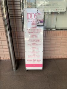 外通路に置いているドーズの看板にチラシを置いております