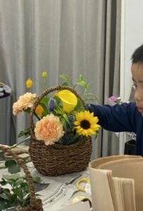 息子とフラワーアレンジメントを体験したり…